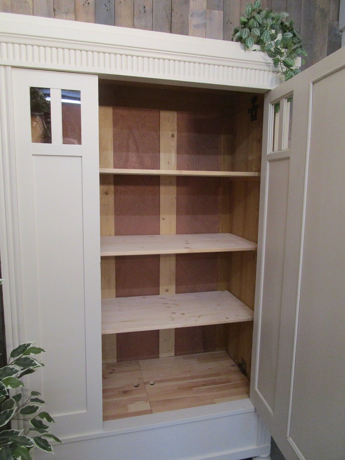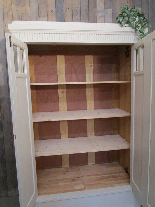Antieke demontabele grenen linnenkast in katoen