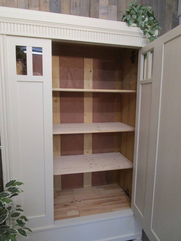 De kast is volledig nagelopen en daar waar reparaties nodig waren zijn deze uitgevoerd. We hebben de kast geschilderd in de kleur Katoen, een zachte off-white kleur.