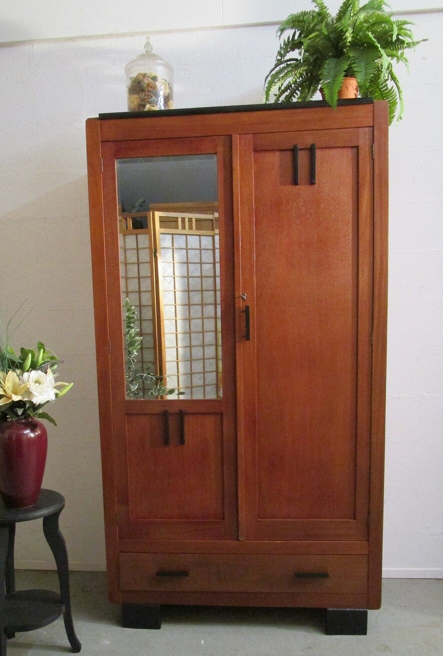 Retro vintage spiegelkast kledingkast - teak