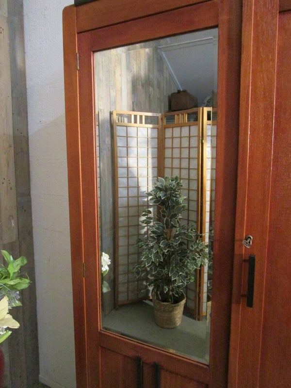 De deuren sluiten goed, het slot is vervangen voor een nieuw exemplaar. De facet geslepen spiegel heeft wat kleine verweerde vlekjes, zeker niet storend en passend bij de leeftijd van de kast.