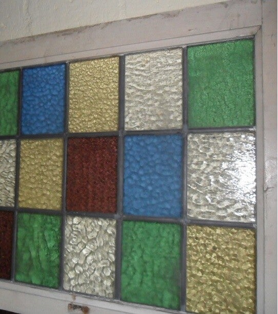 Komt uit een 30er jaren woning waar het als bovenlicht fungeerde.