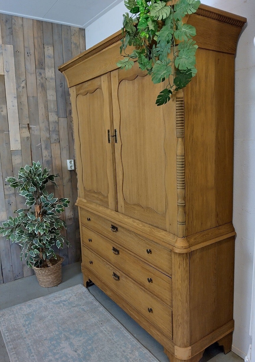 Een schitterend eiken Biedermeier kabinet, een kast van formaat met heel veel opbergruimte.