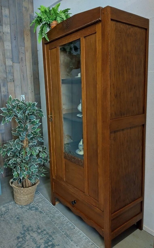 Eiken art-deco vitrinekast met facetgeslepen glas