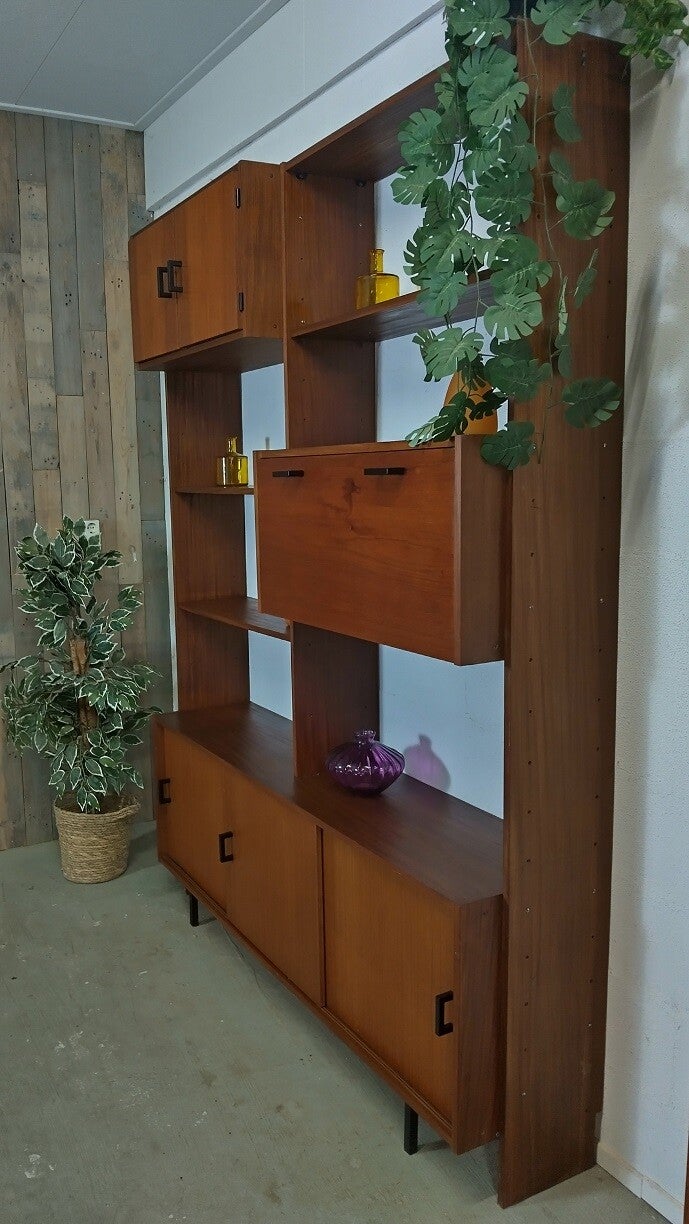 Dit wandmeubel van Simpla lux en dateert 60er jaren. De kast is uitgevoerd in teak fineer.