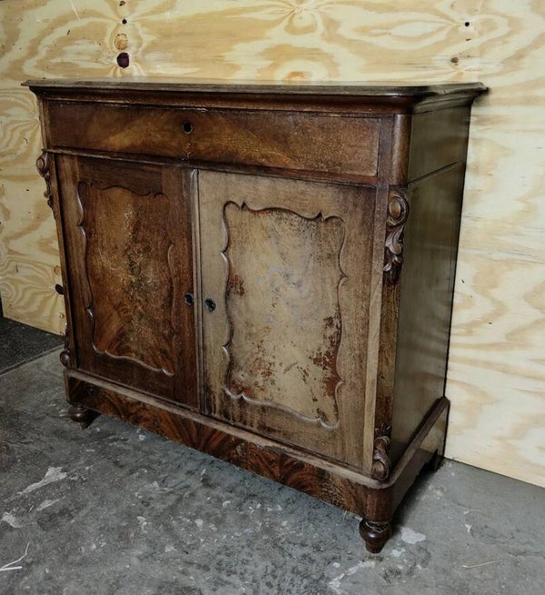 Oud biedermeier penantkastje wat zeker de potentie heeft weer een prachtige kast te worden. De kast is nu wat vaal doordat hij geruime tijd op een zonnige plek gestaan heeft.