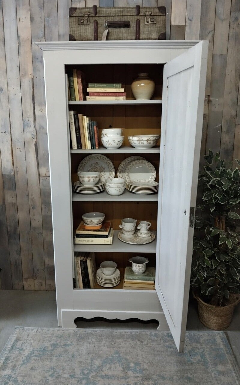 Prachtig oud, hij is doorleefd, hij is compact....... maar oh wat is hij leuk deze eendeurs kast.