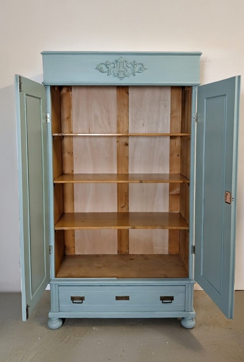 We hebben de kast gereinigd, nagelopen en daar waar een reparatie nodig was hebben we deze uitgevoerd. De kast heeft o.a. een nieuwe achterwand gekregen. De deuren sluiten goed, het slot werkt naar behoren en de sleutel is aanwezig.