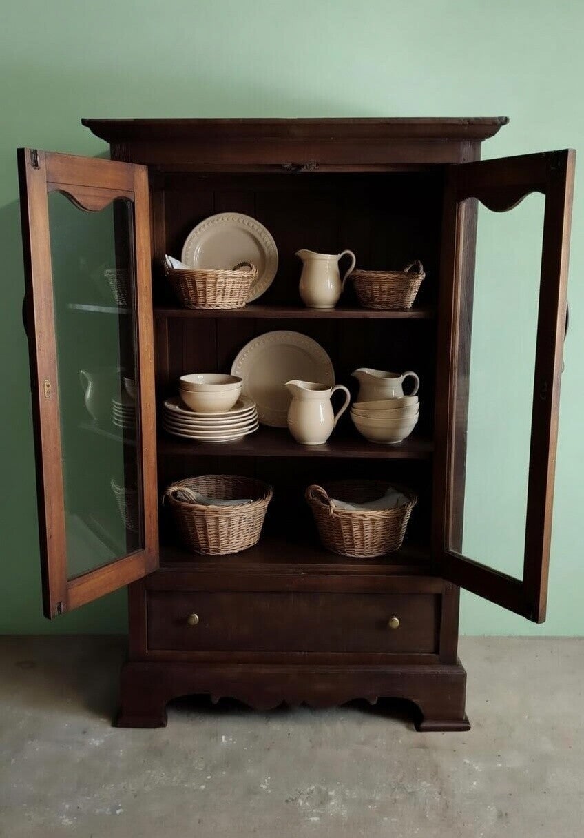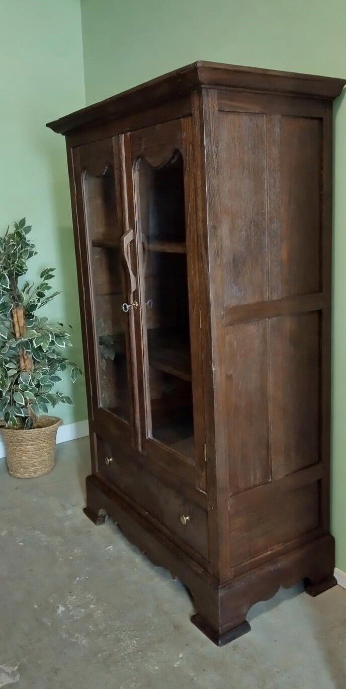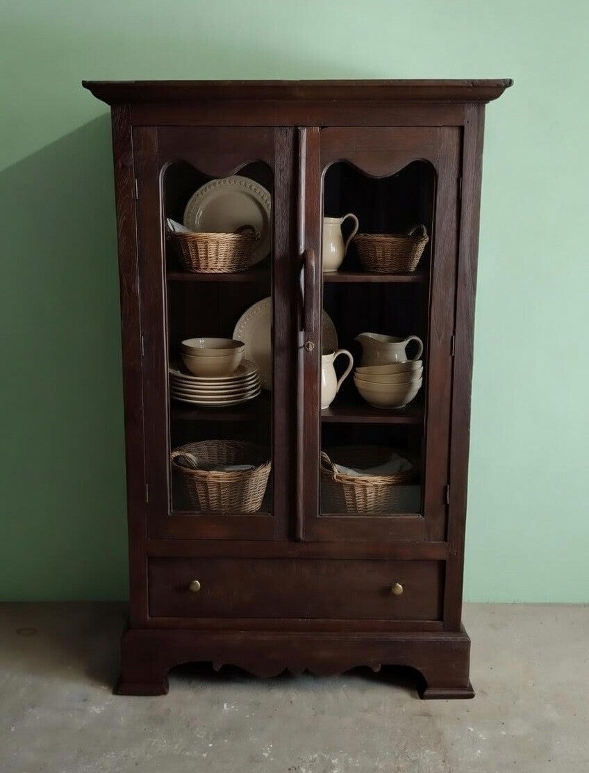Zeer oude landelijke vitrinekast – donker teak